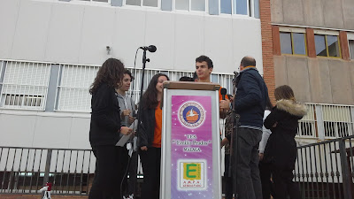 En el instituto se ha realizado un acto en la media hora antes del recreo. A pesar de los problemas de sonido que tan bien han resuelto nuestras técnicas, Nerea y Carmen, se ha leído un manifiesto por la paz por parte de los mediadores del centro, se ha interpretado Imagine a piano por los alumnos de 2º Bachillerato y Adrián Peralta ha interpretado un rap del que es autor.